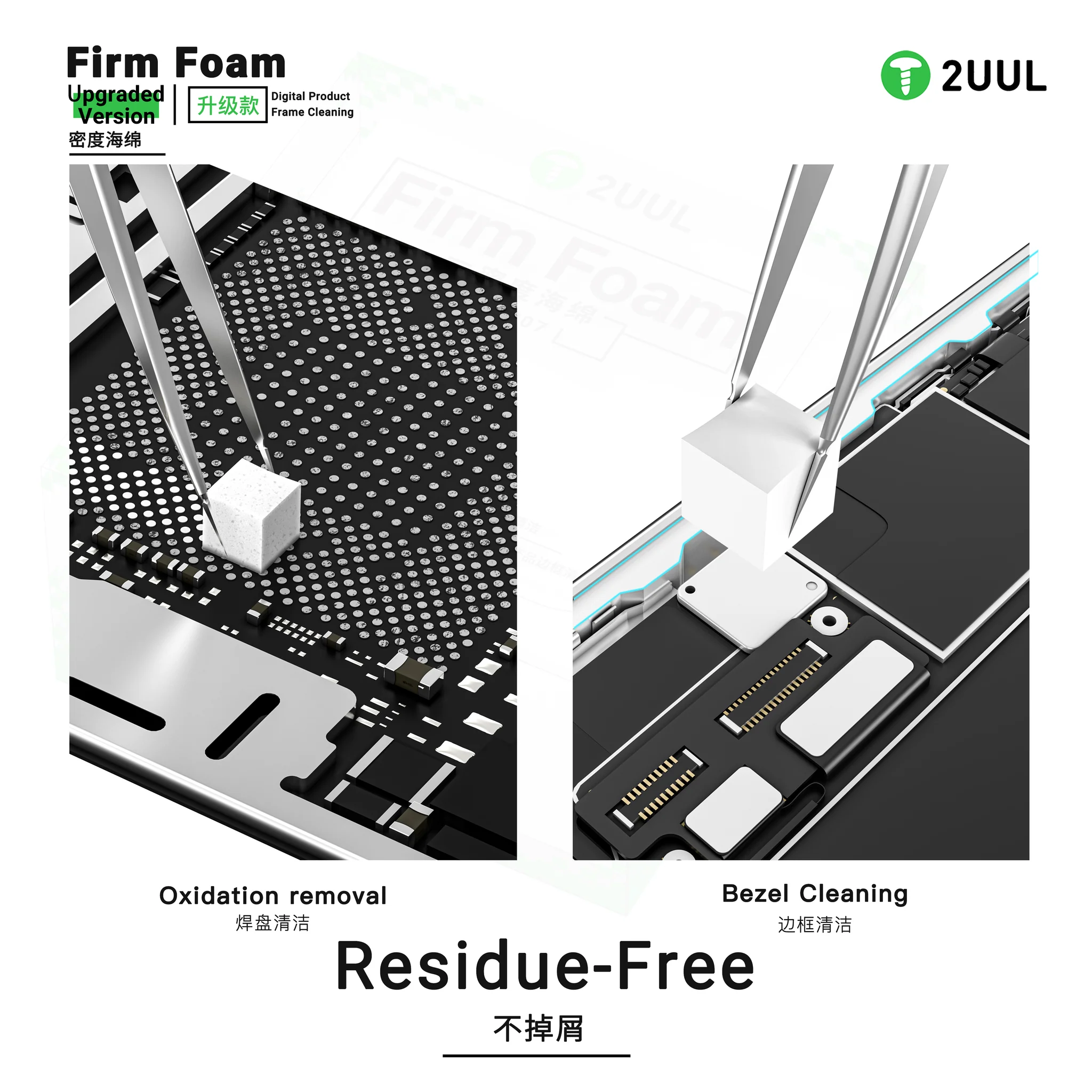 Espuma firme 2UUL SC07 de 7 x 7 x 7 mm (500 unidades/caja) para reparación de teléfonos móviles. Ideal para limpiar chips, cámaras, biseles, placas base y placas PCB, entre otros. Alta densidad, sin residuos, fácil de usar y eficaz para limpiar diversos componentes durante la reparación de teléfonos móviles o portátiles.